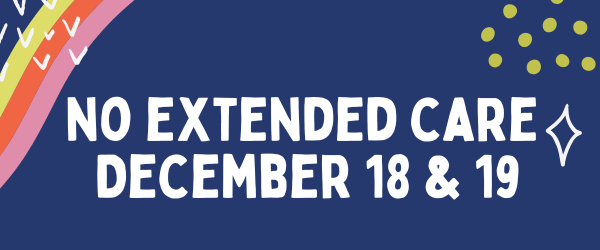 Friendly reminder that there will be no extended care on December 18 & 19.